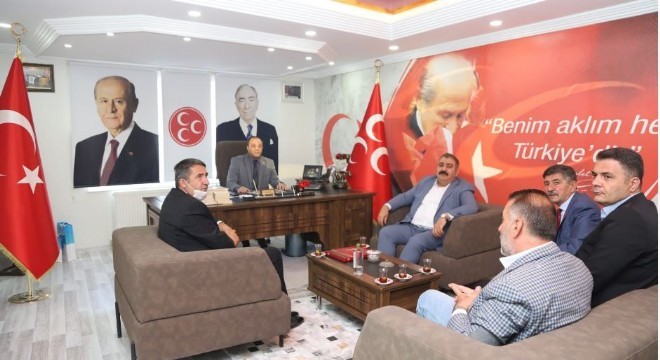 Palandöken Belediyesi Başkanı Muhammet Sunar ve Narman Belediyesi Başkanı Burhanettin Eser’i kabul eden MHP Erzurum İl Başkanı Naim Karataş, yeni il binasının da ilk ziyaretçilerini ağırlamış oldu.