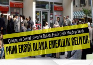 Prim gününe takılıp bir türlü emekli olamayan vatandaşları sevindirecek müjde Çalışma ve Sosyal Güvenlik Bakanı Faruk Çelik'ten geldi. Çelik, prim eksikliği olanların erken emekli olacağını belirtti.