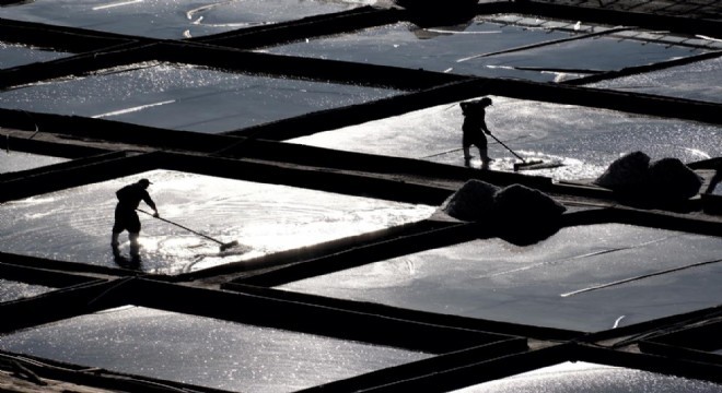 Su ekip tuz topluyorlar