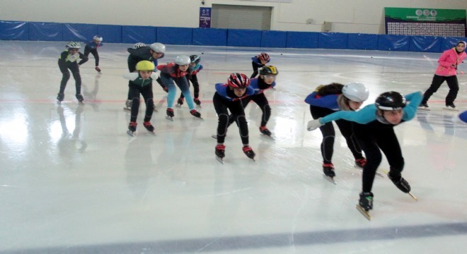 Palandöken ilçesinde bulunan buz pateni salonunda buz üstünde spor yaparak serinleyen çocuklar, “Burası yazın serinlemek için en güzel yer. Dışarıda kavrulurken burada hem antrenman yapıyoruz hem de serinliyoruz. Yazın buraya girdik mi çıkmak istemiyoruz” diye konuştular.