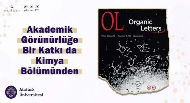 Bu kapsamda, Amerikan Kimya Cemiyeti tarafından yayımlanan ve Organik Kimya alanının etki faktörü itibariyle ilk 4 dergisinden birisi olan Organic Letters dergisi, Atatürk Üniversitesi Fen Fakültesi Kimya Bölümü adresli olarak hazırlanan bir araştırma makalesini kapak yaptı.