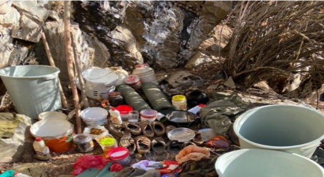 Bitlis'in Hizan ilçesinde güvenlik güçleri tarafından yürütülen terör operasyonu kapsamında terör örgütüne ait toprağa gömülü yaşam malzemesi ele geçirildi.